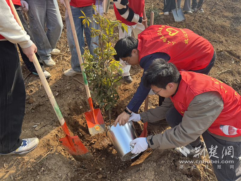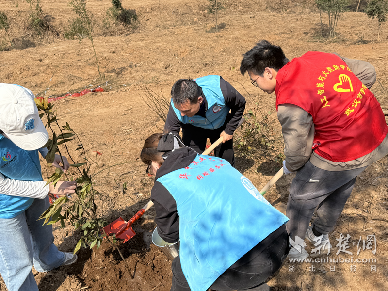 荆楚网(湖北日报网)讯(记者齐一璇 通讯员董小熳 摄影胡鐾文)3月12日下午,武汉商学院人工智能与大数据学院49名师生走进蔡甸区嵩阳林场,开展“四年之约”植树活动。在武汉首批碳中和林基地之一,这批师生们种下近60棵株乌桕、麻栎幼苗。今年是第48个植树节,学院在此已累计栽种树木2000余棵,形成占地46亩的“学子林”。