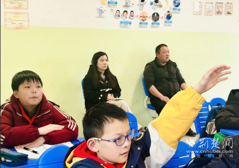 荆楚网(湖北日报网)讯(记者齐一璇 通讯员刘娅梅)3月18日,春雨洗尘,武汉市东西湖区吴家山第四小学的校园里,迎来了一群特殊的“学生”——五、六年级的家长代表们。学校还邀请“两代表一委员” 全程参与开放活动。武汉龙之旅国际旅行社有限公司董事长、东西湖区政协常委、区妇联兼职副主席魏红与家长们一起走进校园,走近孩子,亲历半日真实校园生活。
