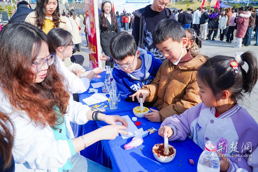 在室外水生态科普区,“一滴水的奇幻之旅”互动实验、pH试纸作画、“湿地净水器”DIY等项目吸引市民与学生参与,直观感受污水变清水的科学原理,七大主题海报展区系统展示南水北调工程贡献、十堰水质保护成效及节水知识。