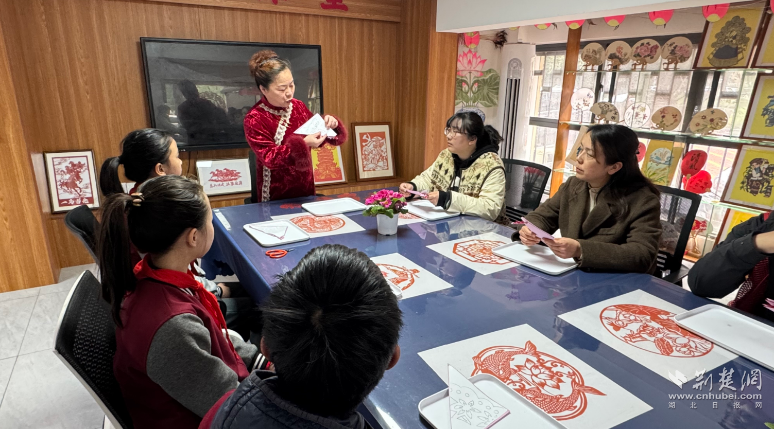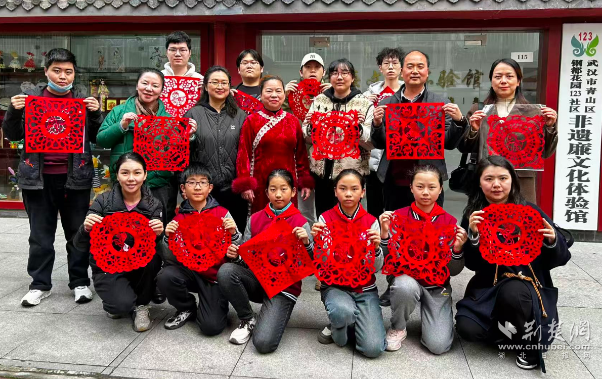 荆楚网(湖北日报网)讯(记者何鹏 通讯员华雨辰、王云芳)一张红纸,承载千年文化;一把剪刀,剪出时代新意。近日,青山区钢花小学师生代表走进青山区钢都花园123社区彭艳华非遗传承人剪纸工作室,举行了一场简朴而庄重的拜师仪式。这不仅是非遗技艺的交接,更是一次家校社协同育人的生动实践。