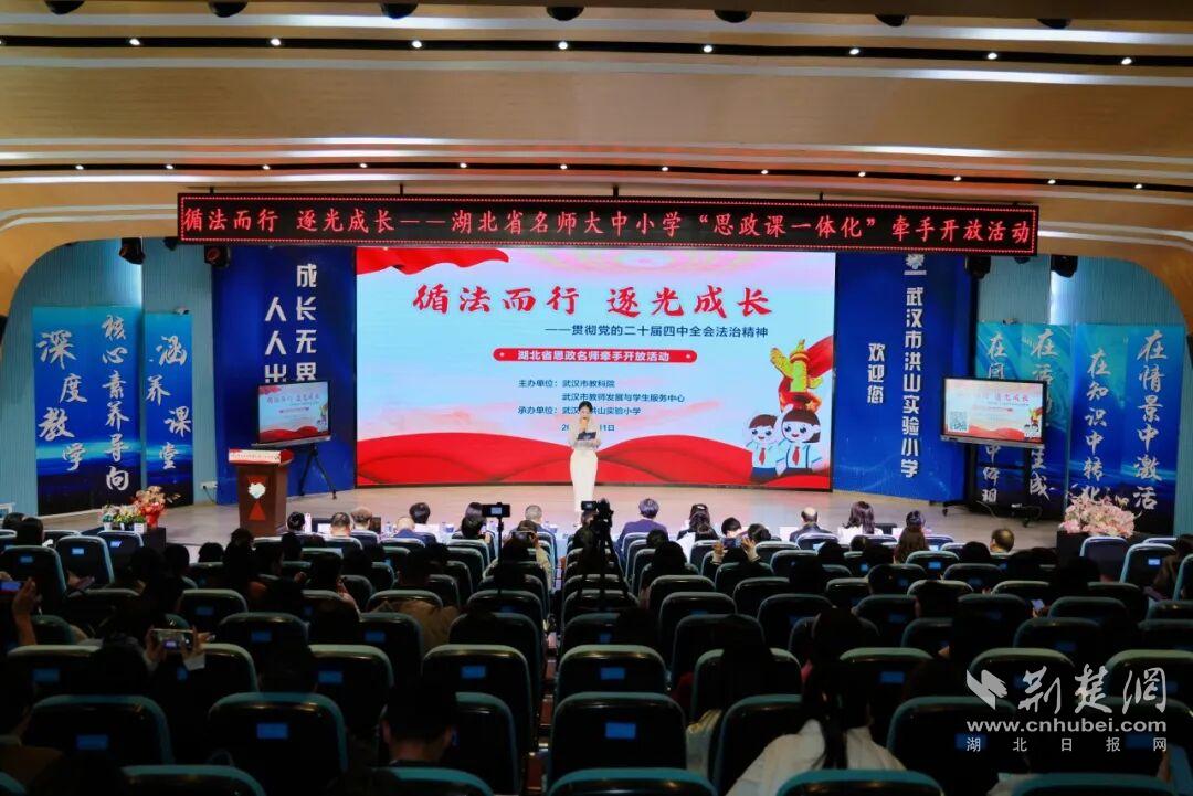 荆楚网(湖北日报网)讯(记者何鹏 通讯员李婧、张雪梅)春和景明,万物生辉。4月1日下午,由武汉市教育科学研究院与武汉市教师发展与学生服务中心主办,湖北省名师工作室及武汉市多支名师团队共同承办的“湖北省思政名师牵手开放活动”在武汉市洪山实验小学隆重举行。活动以“循法而行 逐光成长——贯彻党的二十届四中全会精神”为主题,聚焦大中小学思政课一体化建设,呈现了一场理念交融、精彩纷呈的思政育人盛会。