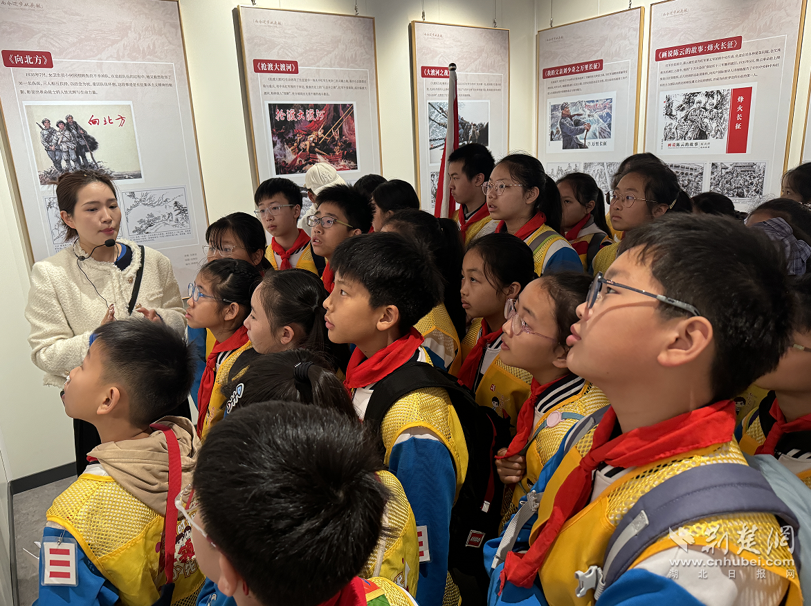 荆楚网(湖北日报网)讯(记者何鹏、齐一璇 通讯员张雨萱)近日,武汉市武昌区南湖第二小学与武汉革命博物馆开展清明节主题队日系列活动,通过“校内宣讲启智+实地体验铸魂”双线模式,以大手牵小手的温暖形式,将长征精神深深根植于队员心中。