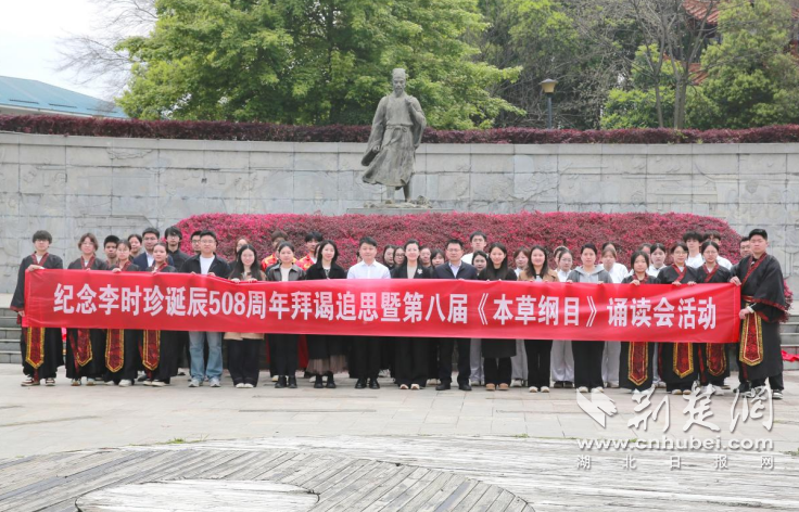 荆楚网(湖北日报网)讯(记者何鹏 通讯员 姚泷皓、方振翼、陈依)4月2日,湖北中医药大学药学院在黄家湖校区李时珍广场隆重举行纪念李时珍诞辰508周年拜谒追思活动暨第八届《本草纲目》诵读会。学院领导班子、全体辅导员及学生代表齐聚广场,以古礼寄哀思,以诵读传经典,共同缅怀医药双圣李时珍的不朽功绩,传承岐黄薪火。