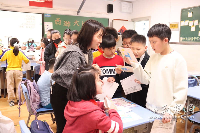 彭老师介绍,阅读活动从寒假就开始布局。“学校发起了‘用压岁钱买一本好书’的倡议,设计了‘小话筒’阅读接力,让孩子们留下问题和挑战,把独自阅读变成双向互动。”开学后,各班评选阅读成果,组建阅读社区,“太阳之子”“阔见远方”……一个个名字都是孩子们自己起的。